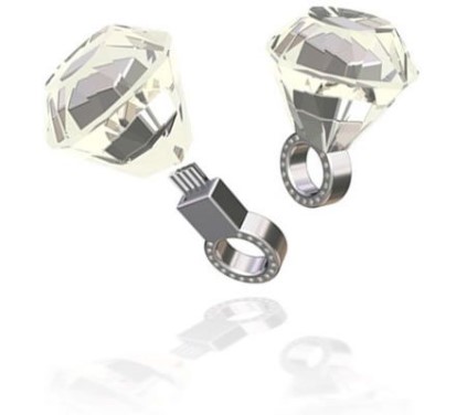 Berikut ada juga cincin berbentuk seperti USB dan ini disebut juga sebagai cincin kawin unik yang bisa Anda pilih. Bagaimana tidak? Jika Anda melihatnya sekilas cincin yang satu ini memang tampak mewah dan elegan, karena pada bagian tengahnya terdapat satu berlian besar yang menjadi daya tarik dari cincin tersebut. Namun, pengait antara berlian dengan ring-nya berupa sebuah USB. Bagaimana? Sangat kreatif sekali, bukan?