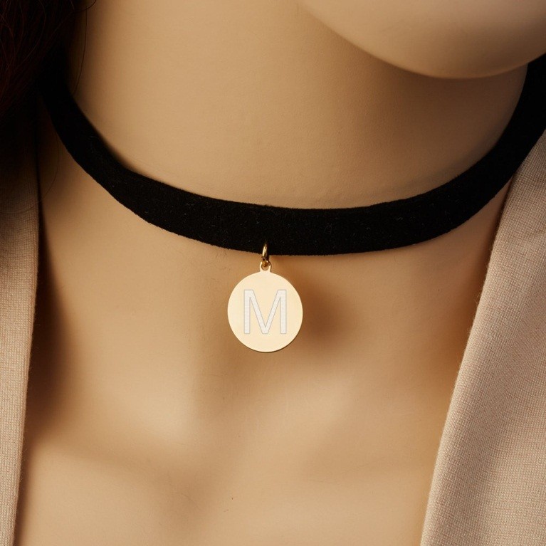 Kalung collar kerap dianggap sebagai kalung choker, padahal panjang tali atau rantai choker lebih pendek dari collar dan posisinya memeluk leher dengan lebih erat. Kalung dengan model choker akan terlihat bagus pada leher yang jenjang atau pada pakaian dengan bahu atau kerah yang lebih terbuka. Anda bisa memilih gaya choker yang lebih mewah dengan rantai emas dan tambahan perhiasan batu-batu mulia di sekitar inisial nama Anda atau gaya yang lebih kasual dengan tali pita kain atau kulit dengan liontin huruf inisial yang menggantung pada bagian depannya.
